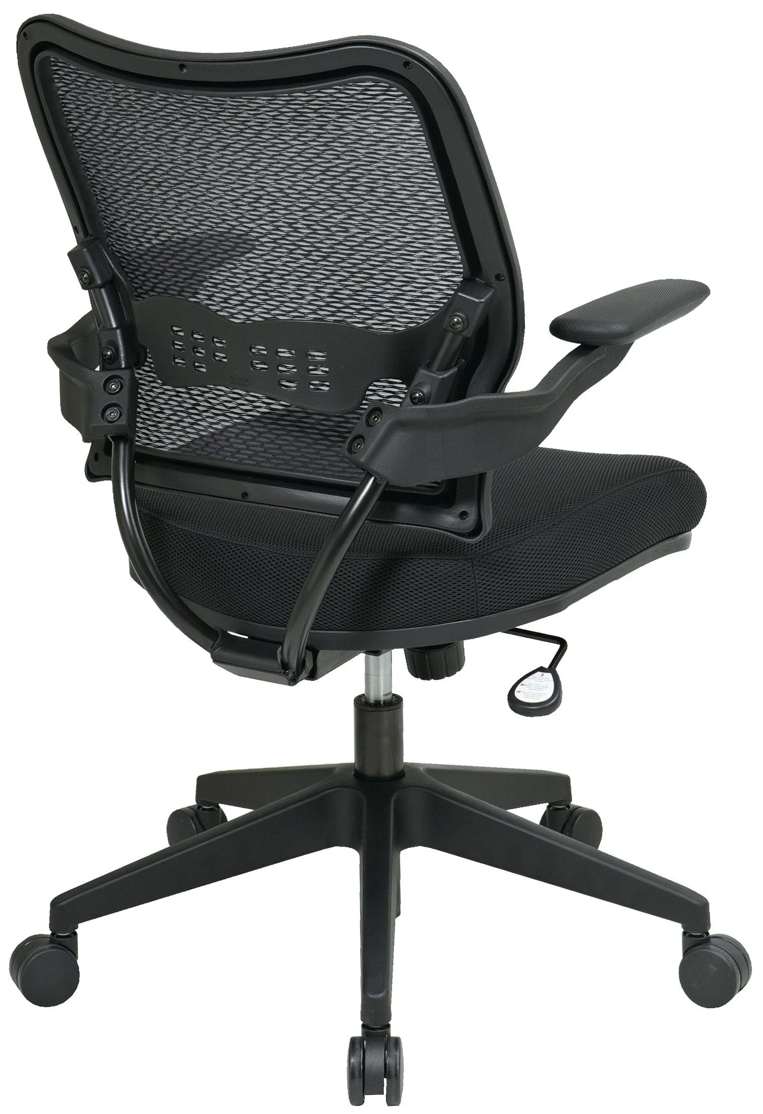 This Office Star chair features a backrest made from Air Grid mesh that promotes optimal airflow and breathability for a cooler seat in any condition. Additional comfort is provided by thick padding in the cushion, mesh fabric upholstery, and built-in lumbar support for a truly comfortable design. The chair also features pneumatically adjusted seat height, adjustable forward tilt that locks, and an adjustable angle for the seat back. The chair includes carpet casters and a nylon base and exceeds or meets the safety, durability, and comfort standards of the ANSI/BIFMA. Also includes a limited Office Star lifetime warranty.